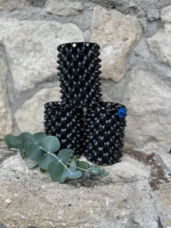 Unikátní tvar květináče nejenže zabraňuje kroužení kořenů (ke kterému jsou eukalypty náchylné), ale také podporuje zdravé pěstební prostředí pro celou rostlinu.