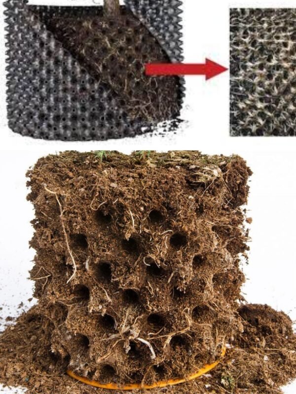 Chytré konstrukční řešení květináče je navrženo tak, aby vytvořilo bezpečný a stabilní radiální kořenový systém – s kořeny vycházejícími z kořenového balu v úhlu 360 stupňů.